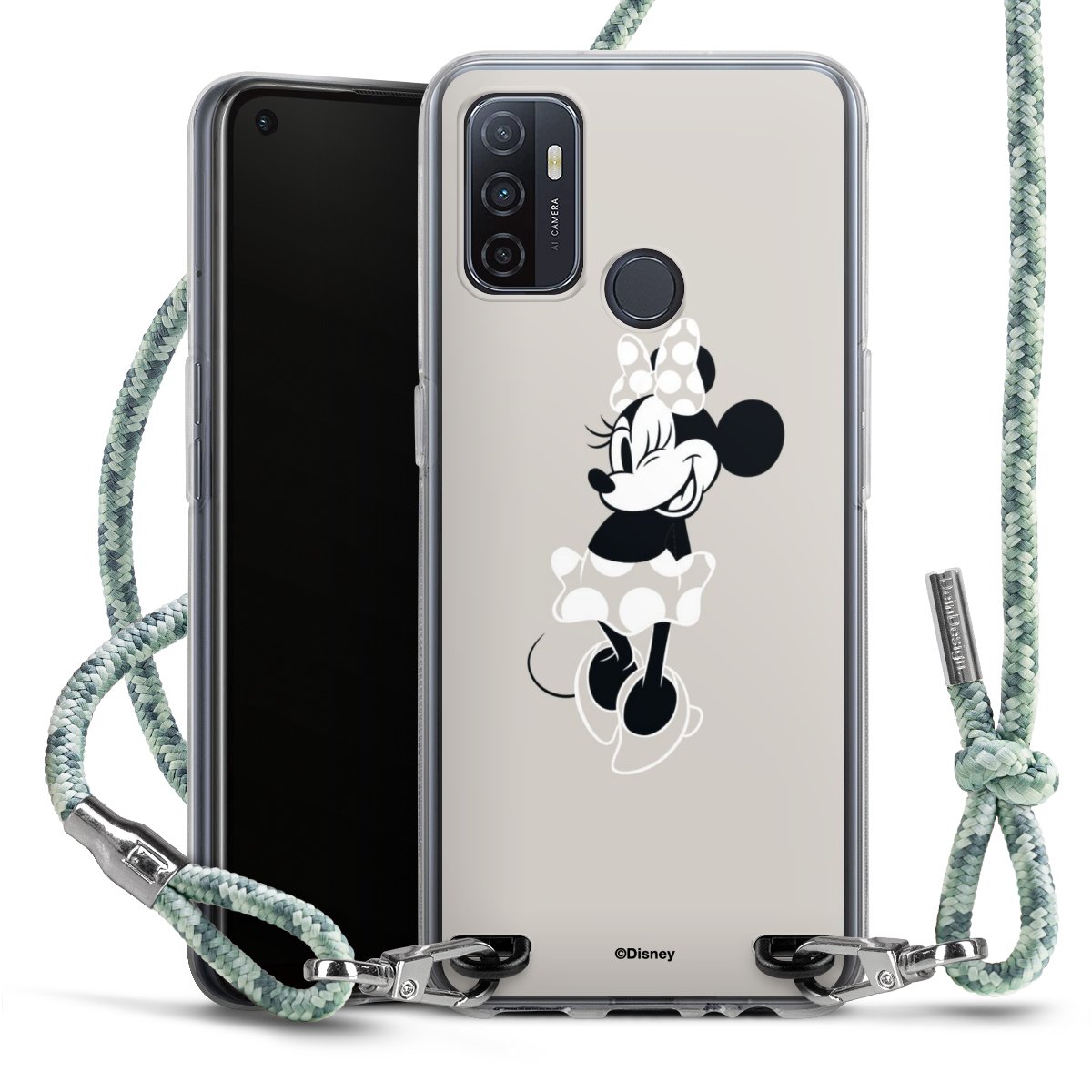 The flexible case is made from a highquality TPU material (thermoplastic Polyurethan). Thanks to its longlasting and break resistant characterisitcs, the case is flexible yet consistent in form and has a great grip and feel. The textile strap made from Polyester gives a chic yet casual accent allowing you to carry your phone like a bag or necklace - a practical gadget perfect for your next adventure. The textile strap is about 1.70 meters long and the length can easily be adjusted through the knots. Our Carry Case is available in Colourful, Mint-Camouflage, Very-Berry, Sahara-Sand and Sparkling-Neon. The ends of the textile strap are covered with metallic end caps to protect them against fraying.