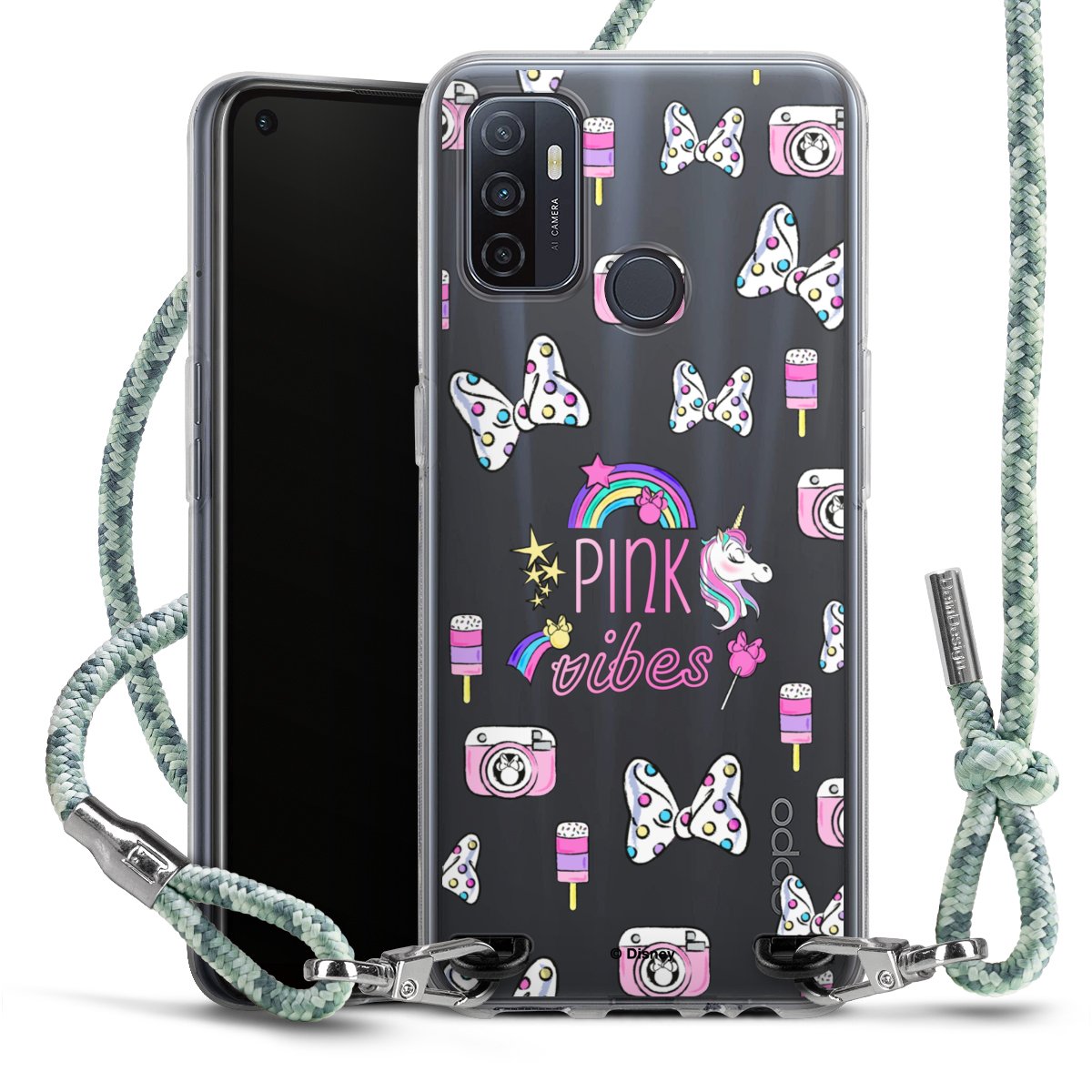 The flexible case is made from a highquality TPU material (thermoplastic Polyurethan). Thanks to its longlasting and break resistant characterisitcs, the case is flexible yet consistent in form and has a great grip and feel. The textile strap made from Polyester gives a chic yet casual accent allowing you to carry your phone like a bag or necklace - a practical gadget perfect for your next adventure. The textile strap is about 1.70 meters long and the length can easily be adjusted through the knots. Our Carry Case is available in Colourful, Mint-Camouflage, Very-Berry, Sahara-Sand and Sparkling-Neon. The ends of the textile strap are covered with metallic end caps to protect them against fraying.