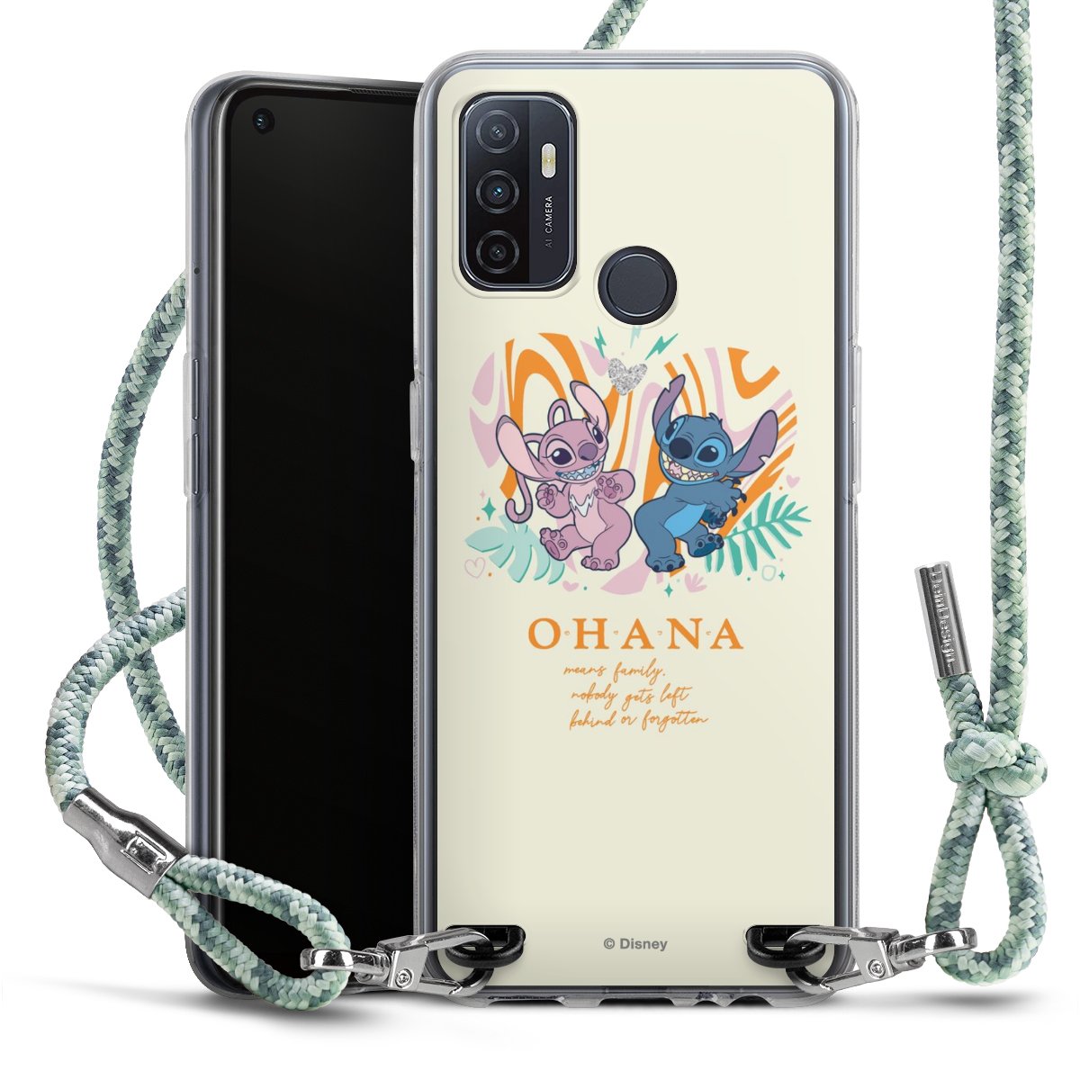 The flexible case is made from a highquality TPU material (thermoplastic Polyurethan). Thanks to its longlasting and break resistant characterisitcs, the case is flexible yet consistent in form and has a great grip and feel. The textile strap made from Polyester gives a chic yet casual accent allowing you to carry your phone like a bag or necklace - a practical gadget perfect for your next adventure. The textile strap is about 1.70 meters long and the length can easily be adjusted through the knots. Our Carry Case is available in Colourful, Mint-Camouflage, Very-Berry, Sahara-Sand and Sparkling-Neon. The ends of the textile strap are covered with metallic end caps to protect them against fraying.