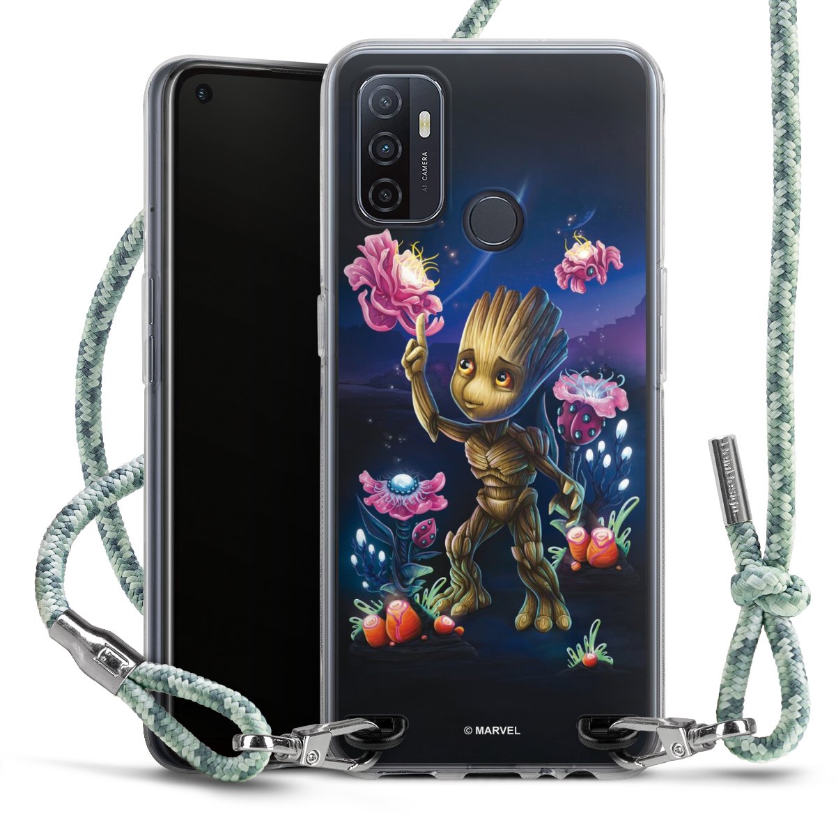 The flexible case is made from a highquality TPU material (thermoplastic Polyurethan). Thanks to its longlasting and break resistant characterisitcs, the case is flexible yet consistent in form and has a great grip and feel. The textile strap made from Polyester gives a chic yet casual accent allowing you to carry your phone like a bag or necklace - a practical gadget perfect for your next adventure. The textile strap is about 1.70 meters long and the length can easily be adjusted through the knots. Our Carry Case is available in Colourful, Mint-Camouflage, Very-Berry, Sahara-Sand and Sparkling-Neon. The ends of the textile strap are covered with metallic end caps to protect them against fraying.