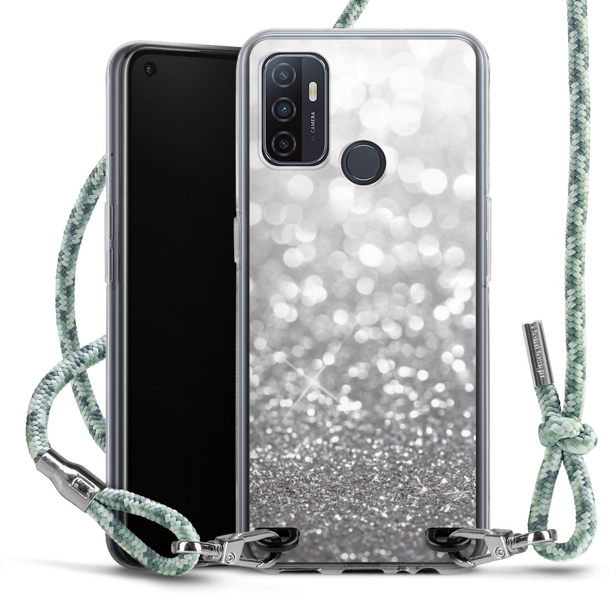 The flexible case is made from a highquality TPU material (thermoplastic Polyurethan). Thanks to its longlasting and break resistant characterisitcs, the case is flexible yet consistent in form and has a great grip and feel. The textile strap made from Polyester gives a chic yet casual accent allowing you to carry your phone like a bag or necklace - a practical gadget perfect for your next adventure. The textile strap is about 1.70 meters long and the length can easily be adjusted through the knots. Our Carry Case is available in Colourful, Mint-Camouflage, Very-Berry, Sahara-Sand and Sparkling-Neon. The ends of the textile strap are covered with metallic end caps to protect them against fraying.