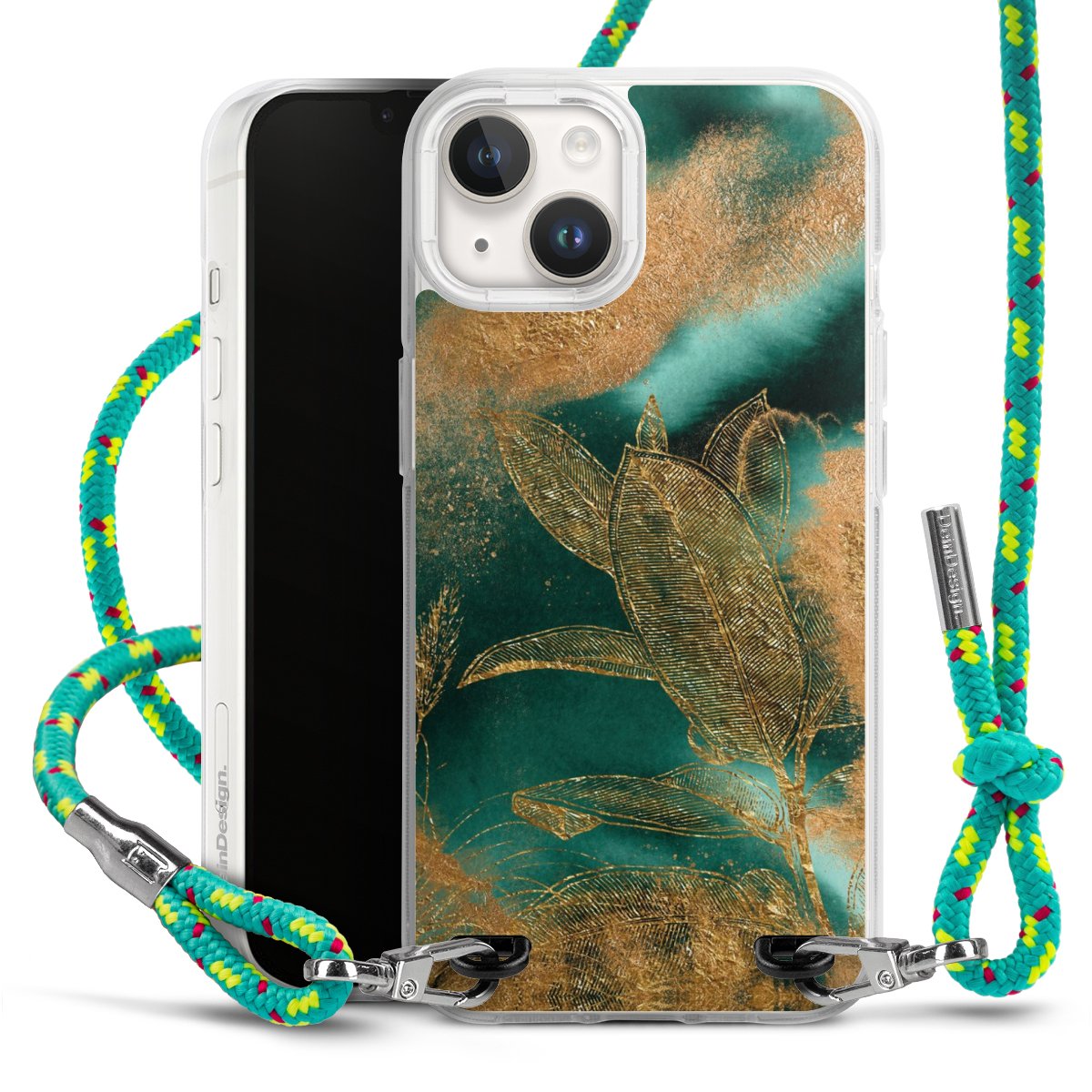 The flexible case is made from a highquality TPU material (thermoplastic Polyurethan). Thanks to its longlasting and break resistant characterisitcs, the case is flexible yet consistent in form and has a great grip and feel. The textile strap made from Polyester gives a chic yet casual accent allowing you to carry your phone like a bag or necklace - a practical gadget perfect for your next adventure. The textile strap is about 1.70 meters long and the length can easily be adjusted through the knots. Our Carry Case is available in Colourful, Mint-Camouflage, Very-Berry, Sahara-Sand and Sparkling-Neon. The ends of the textile strap are covered with metallic end caps to protect them against fraying.