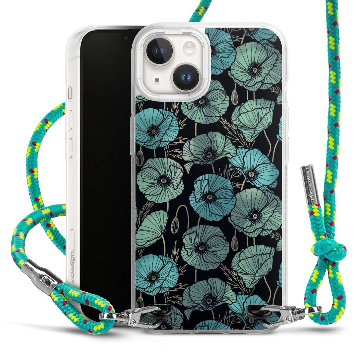 The flexible case is made from a highquality TPU material (thermoplastic Polyurethan). Thanks to its longlasting and break resistant characterisitcs, the case is flexible yet consistent in form and has a great grip and feel. The textile strap made from Polyester gives a chic yet casual accent allowing you to carry your phone like a bag or necklace - a practical gadget perfect for your next adventure. The textile strap is about 1.70 meters long and the length can easily be adjusted through the knots. Our Carry Case is available in Colourful, Mint-Camouflage, Very-Berry, Sahara-Sand and Sparkling-Neon. The ends of the textile strap are covered with metallic end caps to protect them against fraying.